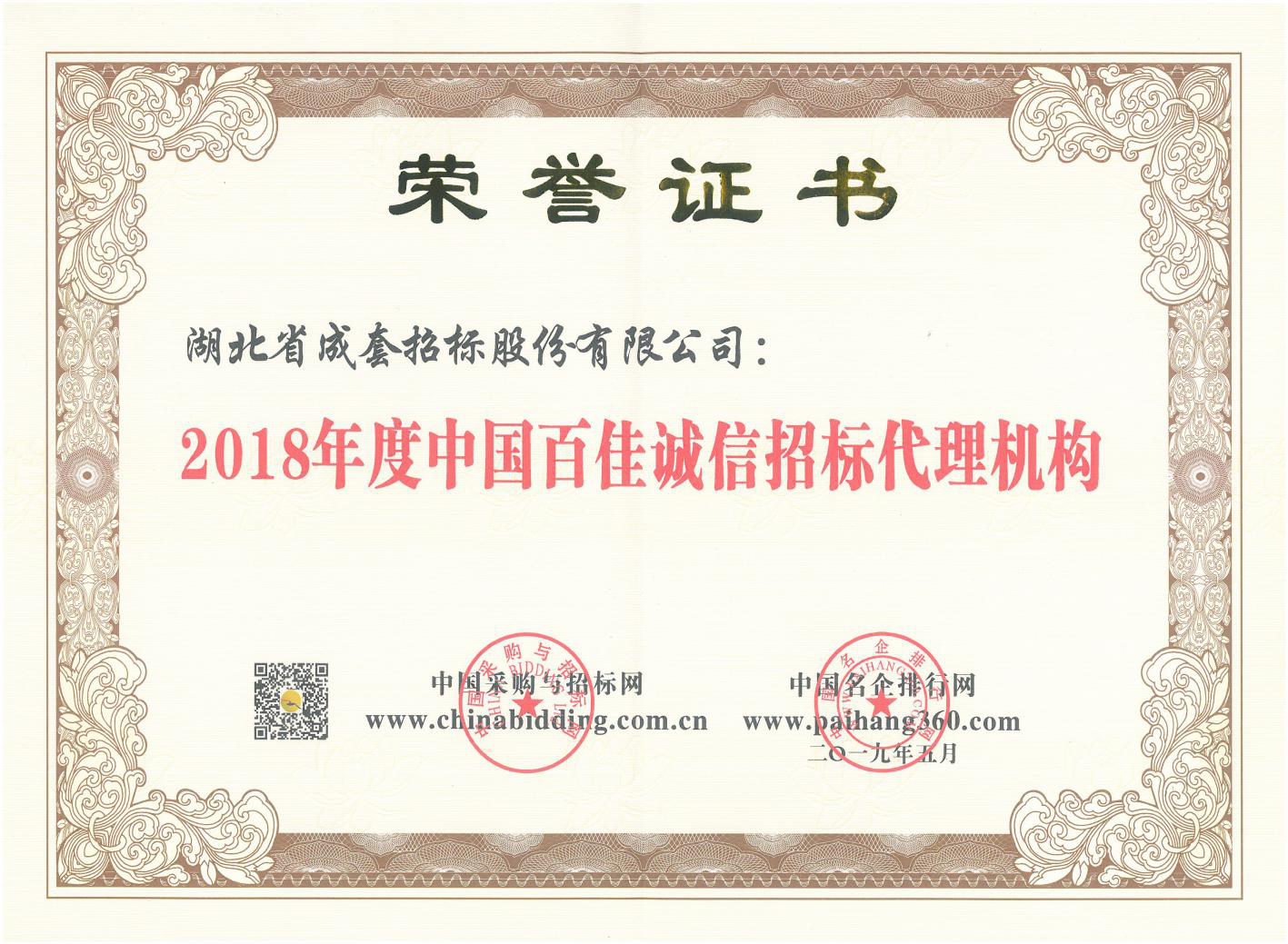 2018年武漢市公共資源交易中介代理機構誠信創優評選活動“十佳單位”
