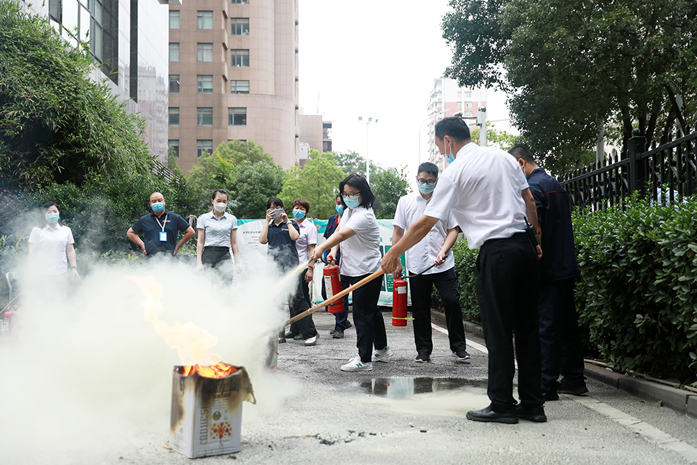 在演練現場,公司參與演練的員工學習了火災預防、火場自救及逃生方法等消防安全基本常識,在辦公大樓里模擬了突發火情的應急處理流程,并對滅火器的正確使用進行了實操演練。