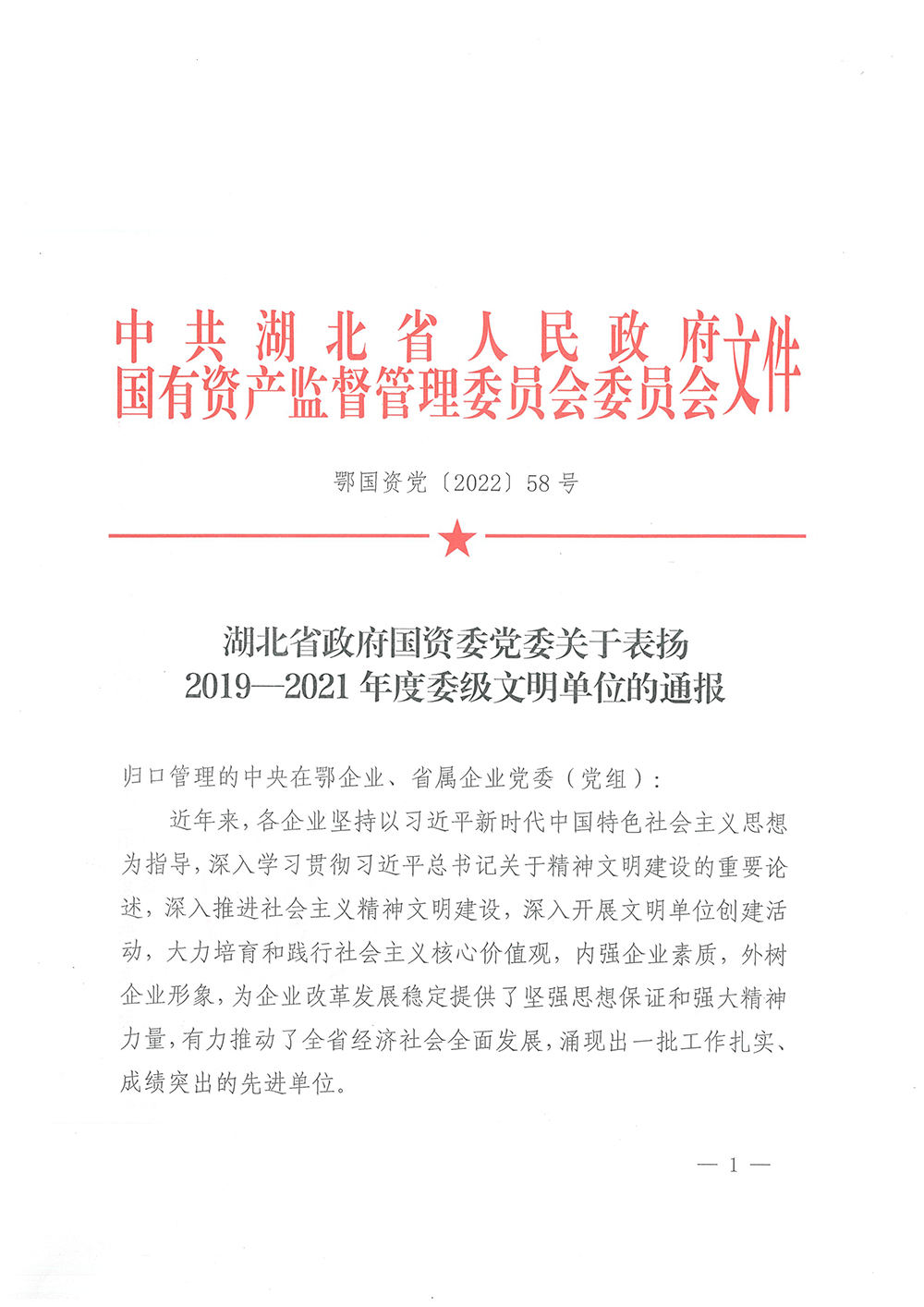 近日,成套公司繼2019年榮獲“文明單位”后,又順利通過省政府國資委“2019-2021年度委級文明單位”復審,繼續保留“委級文明單位”榮譽稱號。