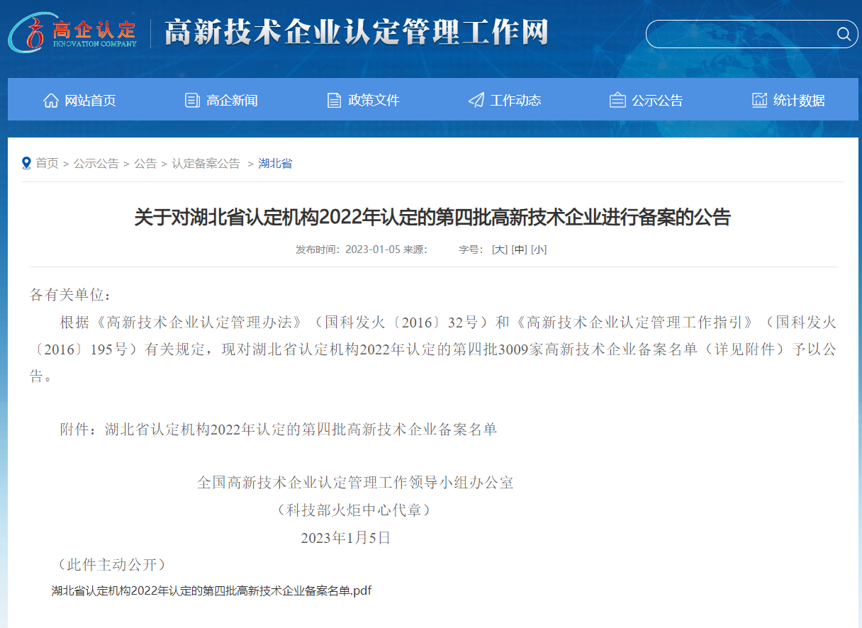 1月5日,在全國高新技術企業認定管理工作領導小組辦公室發布的公告中,成套公司榜上有名,順利通過2022年度第四批高新技術企業認定,獲得國家級“高新技術企業”資質(證書編號為:GR202242004985)。