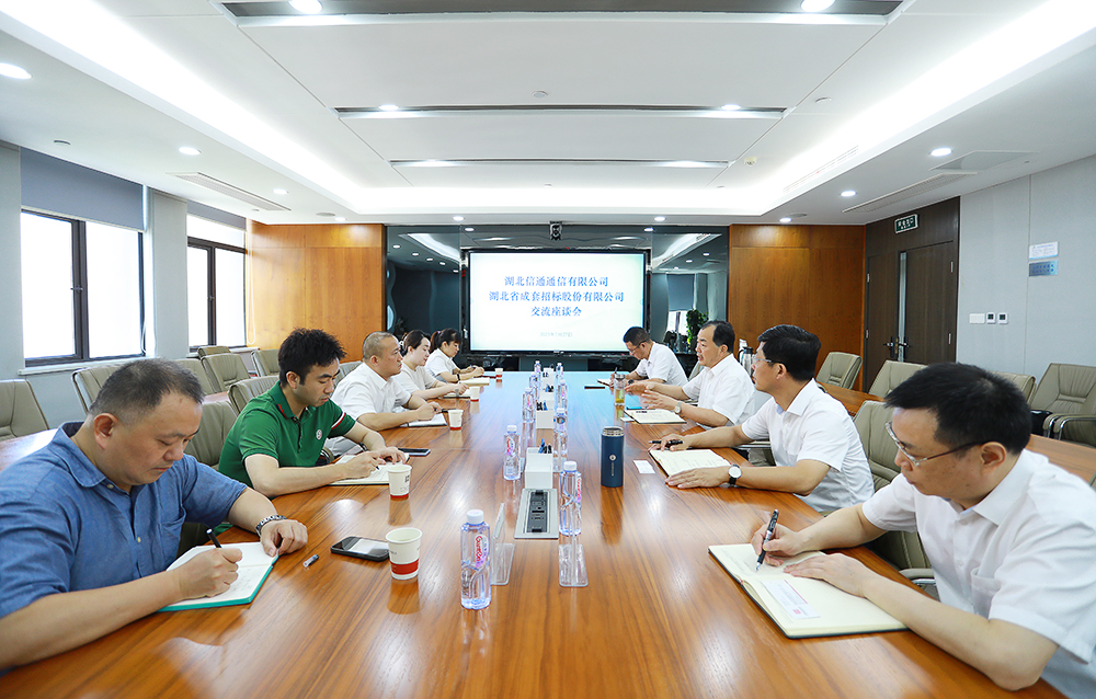 7月27日,湖北省信通通信有限公司招標部總經理徐勇等一行5人到成套公司調研座談。公司黨委書記、董事長黃澤旺,副總經理李啟發出席會議并開展交流,相關職能部門負責人參加座談。