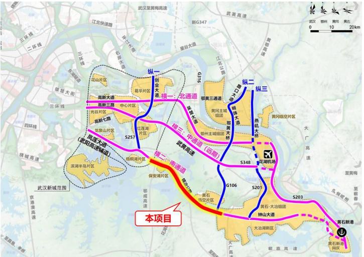 該項目屬于武鄂黃黃“三橫”南通道中的一段,路線全長27.949 公里,項目總投資約為18億元。項目的實施將進一步加強武鄂黃黃的交通路網(wǎng)建設(shè),有利于加快推動武鄂黃黃同城化發(fā)展,對加快黃石融入武漢都市圈的核心區(qū)具有重要意義。