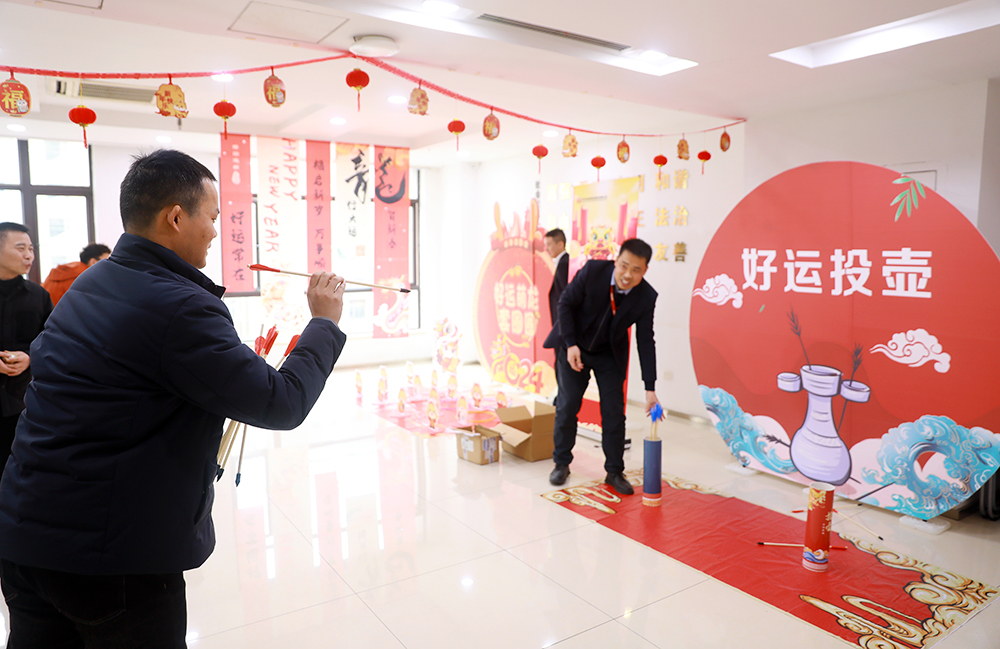 新春團(tuán)拜結(jié)束后是公司精心策劃的游園會環(huán)節(jié)。公司全體員工帶著飽滿的熱情參與到猜燈謎、寫春聯(lián)、折燈籠、蒙眼敲鑼等年味挑戰(zhàn)活動(dòng)中,活動(dòng)現(xiàn)場精彩紛呈,熱鬧非凡。
