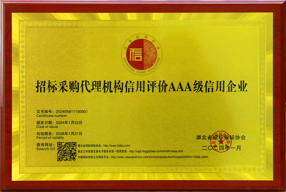近日,在由湖北省招標投標協會舉辦的第三屆四次理事會暨表彰大會上,成套公司獲評招標采購代理機構信用評價最高AAA等級,公司20名業務骨干獲“招標先進個人”榮譽稱號,進一步體現社會各界對公司在招標采購咨詢服務領域綜合實力的高度認可。