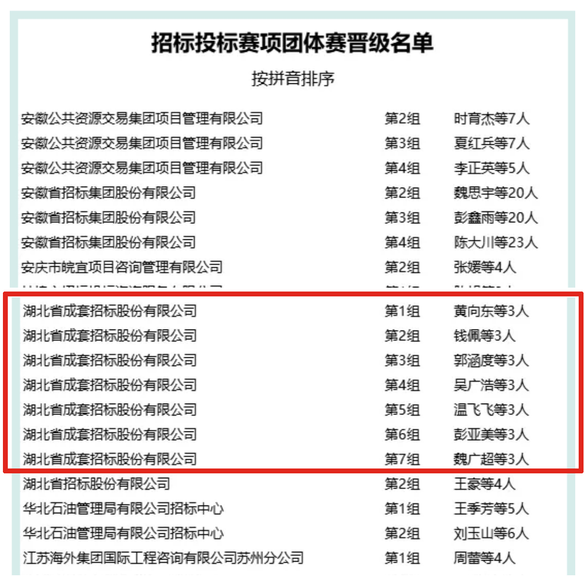 8月27日,由《中國招標》期刊有限公司主辦的首屆招標投標與政府采購技能大賽發布了晉級決賽資格名單。省成套招標公司7個小組、19人分別晉級招標投標賽項團體賽和個人賽決賽。3個小組、15個人分別晉級政府采購賽項目團體賽和個人賽決賽。