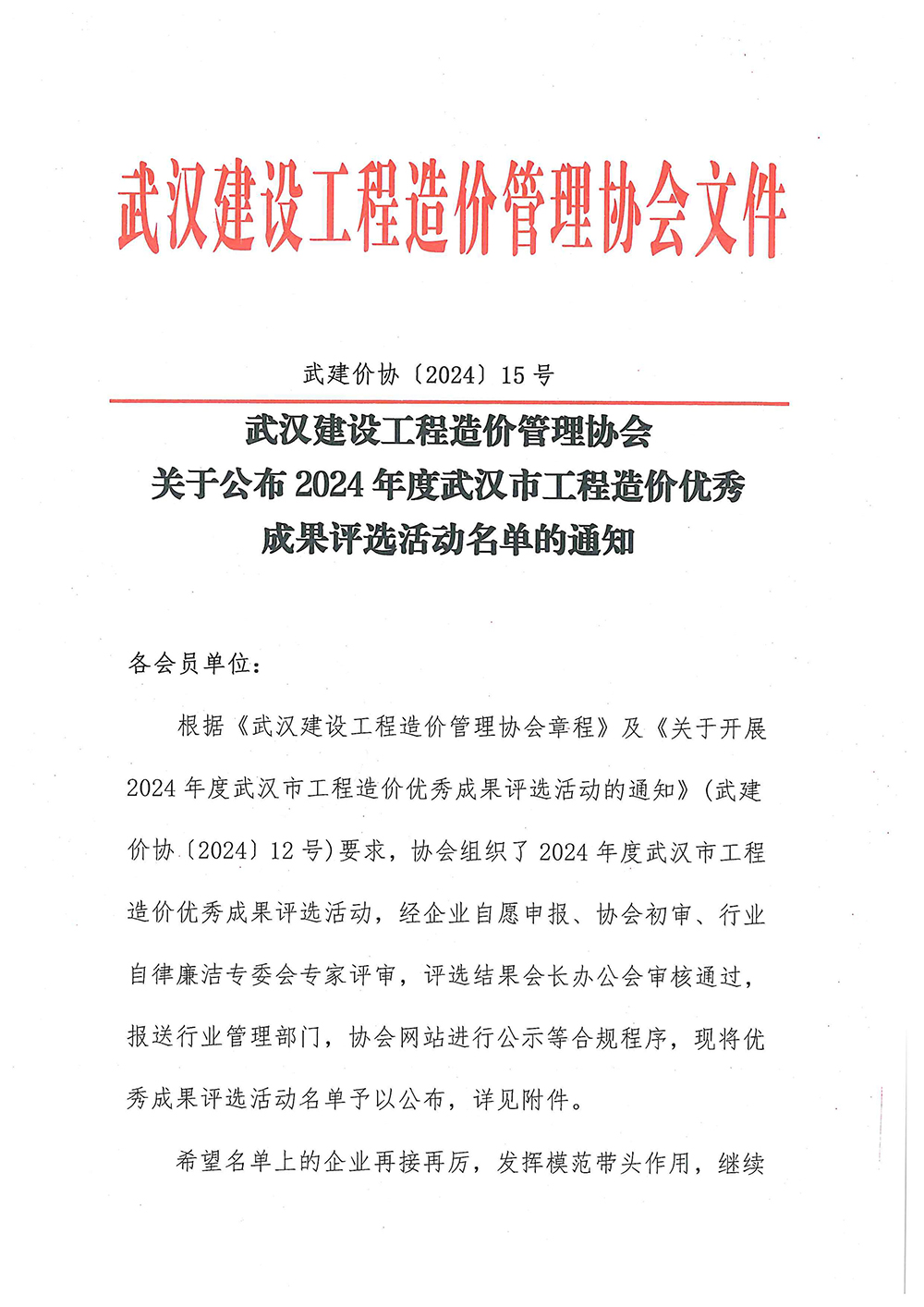 11月27日,武漢建設工程造價管理協會公布2024年度武漢市工程造價優秀成果的評選結果,省成套招標公司下屬子公司省成套造價公司(下稱“造價公司”)申報的“利川至萬州高速公路湖北段工程竣工結算審計”與“武漢市軌道交通新港線西延線工程土建工程”兩個項目在評選中脫穎而出,榮獲“2024年武漢市工程造價優秀成果獎”的殊榮。此次獲獎,是行業對造價公司專業能力和服務水平的充分肯定,也是對公司未來發展的激勵與鞭策。