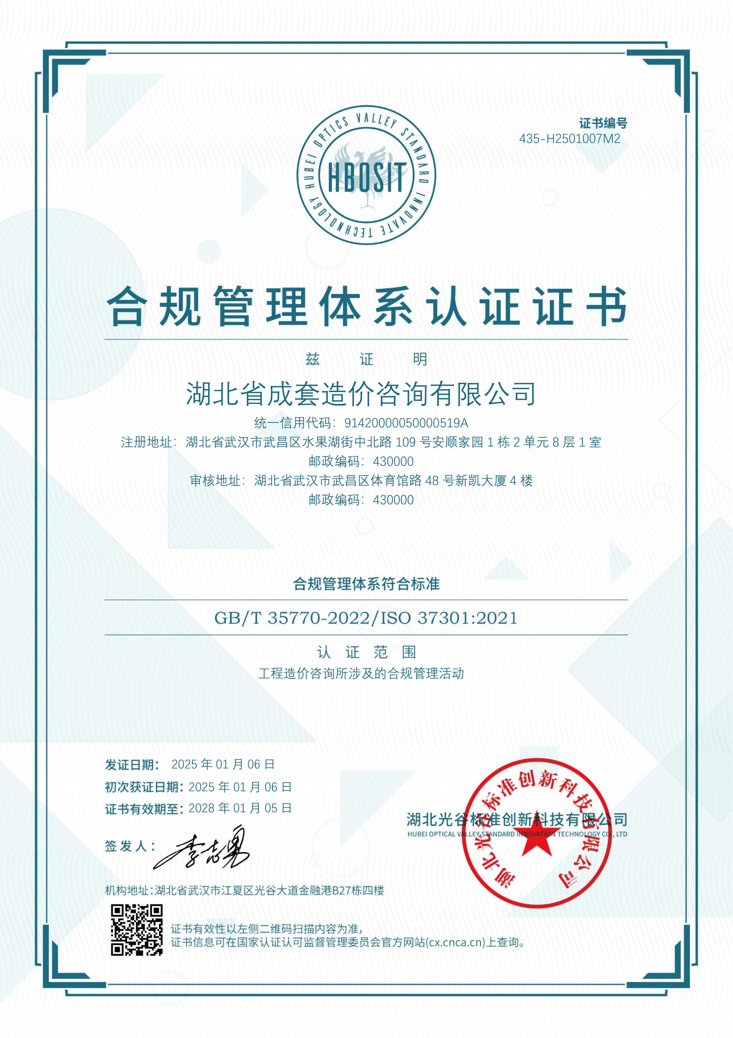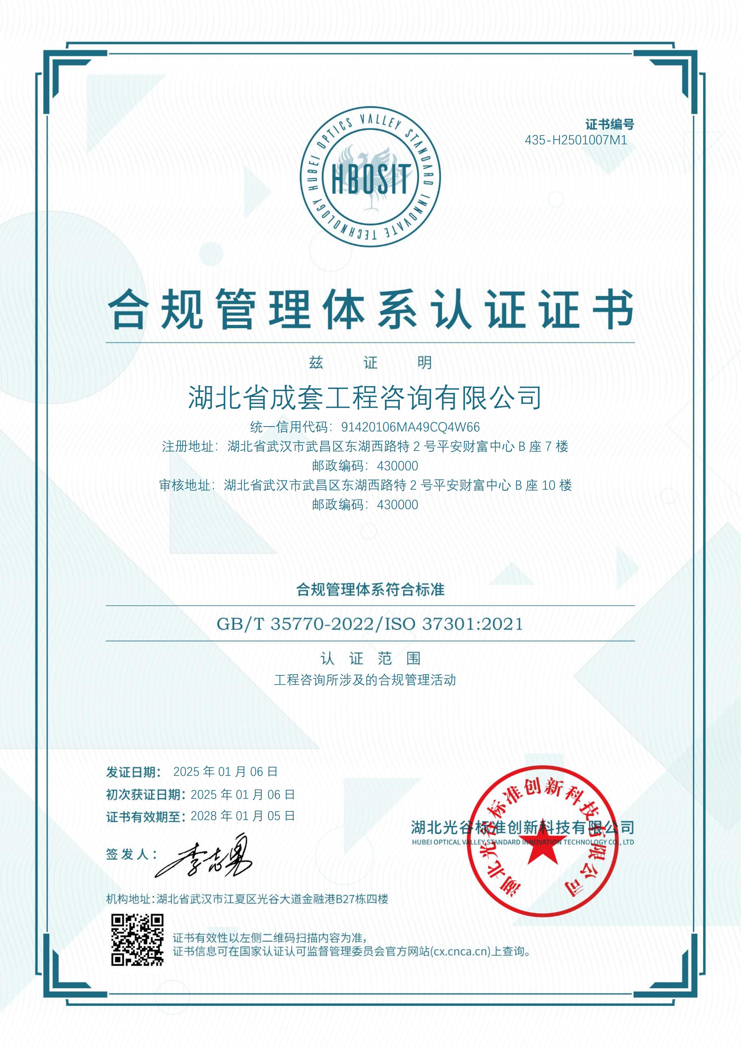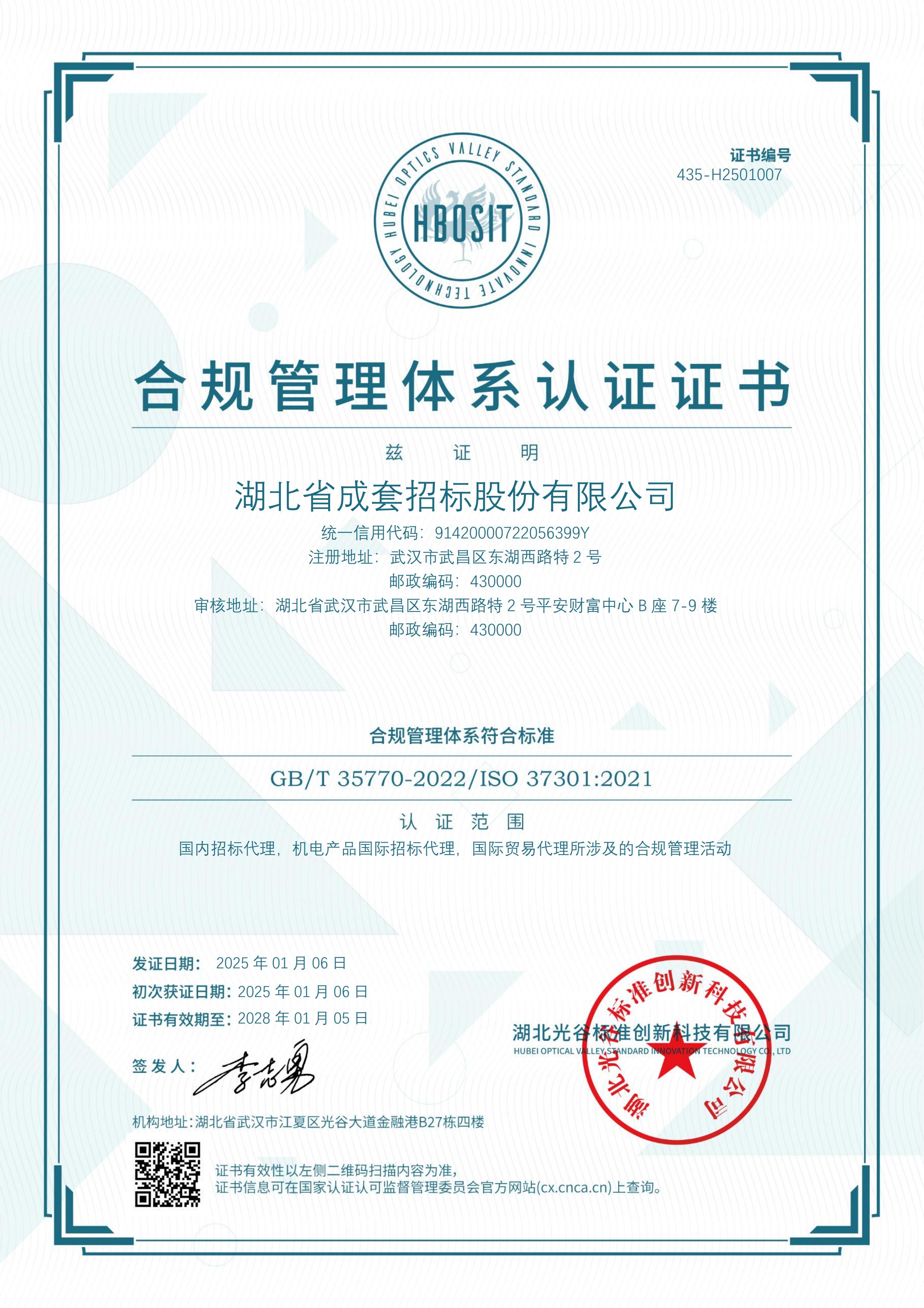 在復雜多變的市場環境中,企業的合規經營是贏得客戶信任、實現可持續發展的關鍵。省成套招標公司將以此次認證為新的起點,不斷優化和完善合規管理體系,保持管理體系的先進性和有效性,以更高的標準為客戶提供優質、可靠的服務,確保公司在高質量發展道路上行穩致遠,促進行業健康有序發展。