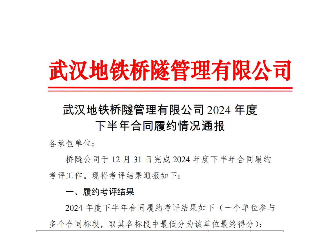 近日,武漢地鐵橋隧公司公布2024年度招標(biāo)代理單位合同履約情況考評(píng)結(jié)果,省成套招標(biāo)公司以高分通過考評(píng),再次獲得優(yōu)秀等次。